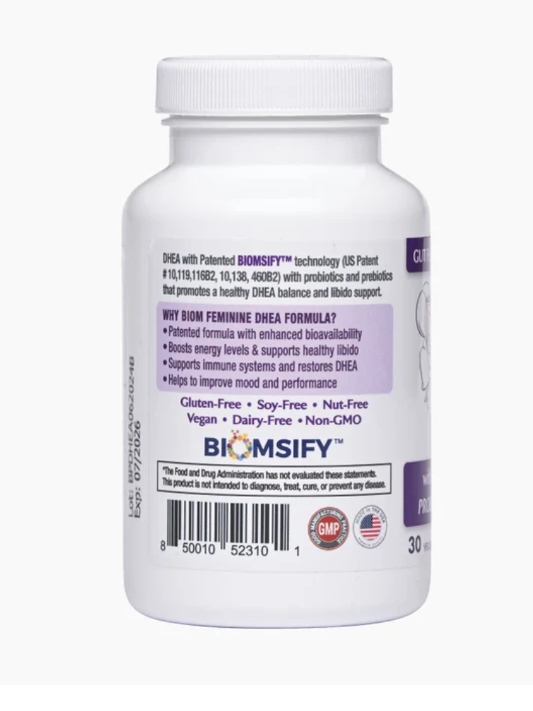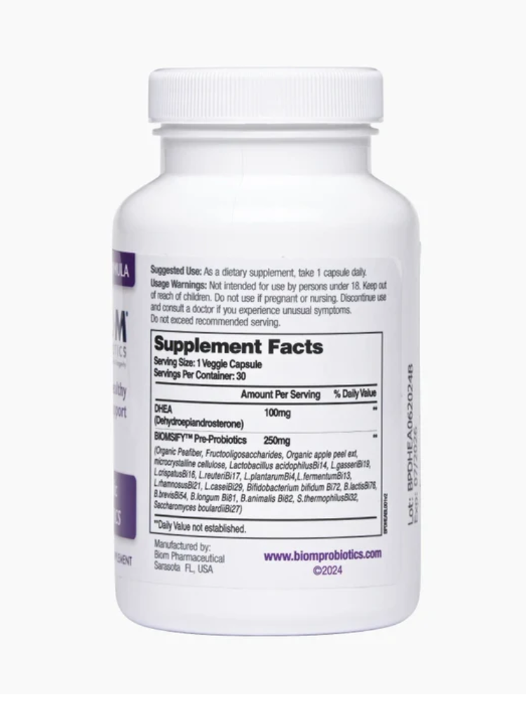 La DHEA de alta potencia de Biom ayuda a restablecer niveles óptimos de esta hormona clave, promoviendo un sistema hormonal equilibrado y una sensación renovada de vitalidad. Su efecto antienvejecimiento contribuye al bienestar integral a medida que pasan los años.